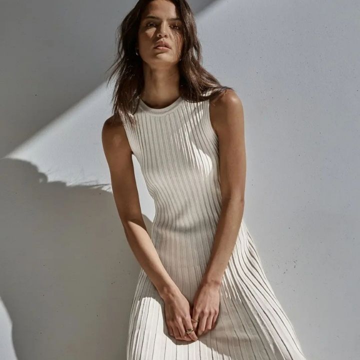 Ribgebreide Maxi-Jurk | Halternek & Plissérok | Minimalistische Elegantie
