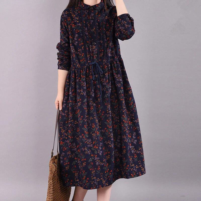 Vintage Midi Jurk | Bloemenprint & Comfortabel | Met Strikceintuur